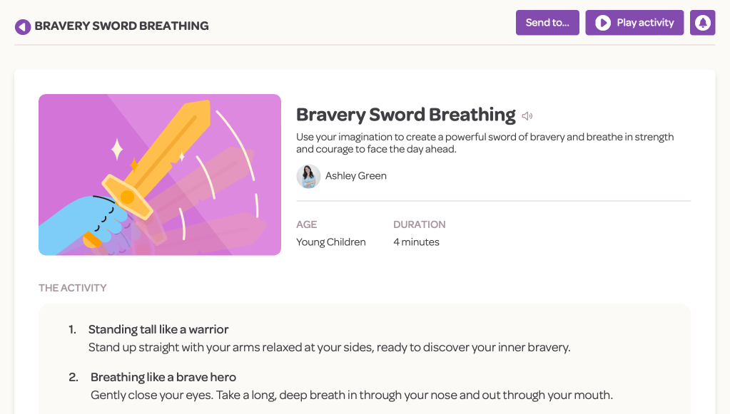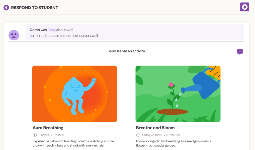 Prior to YouHue, I used a range of different tools, YouTube videos, and other apps and often spent time searching for the right activity to respond to an appropriate emotional response from a child. The activities feature, firstly, eliminates all the searching. If a child comes into the class in the morning anxious, I can set them an activity such as: